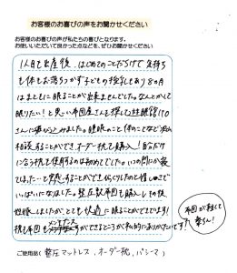いつもお布団のことから家族のおすすめお出かけスポットまで相談に乗っていただいてお世話になっております。今回も枕のメンテナンスだったのに、8割は子供の話や相談でした。